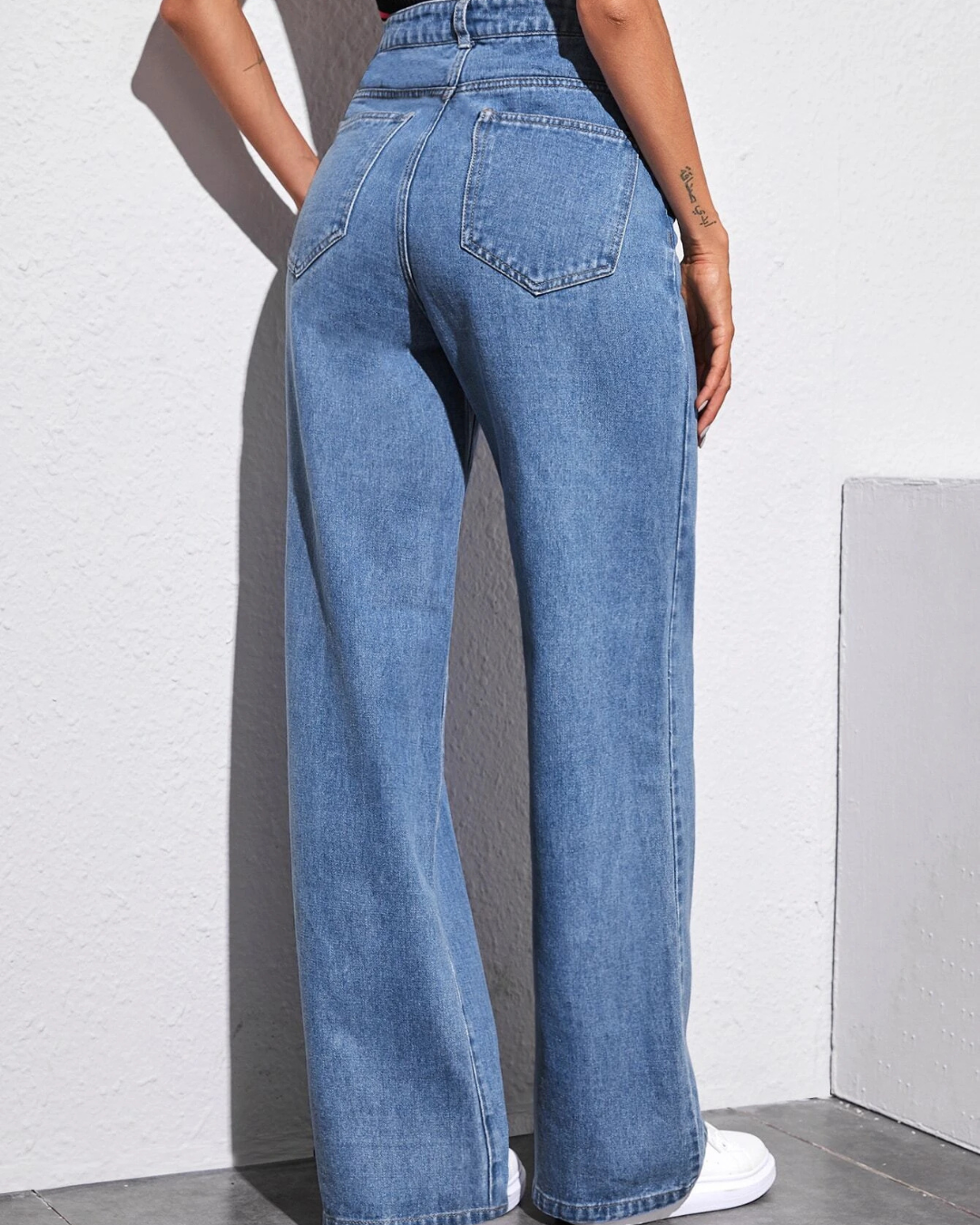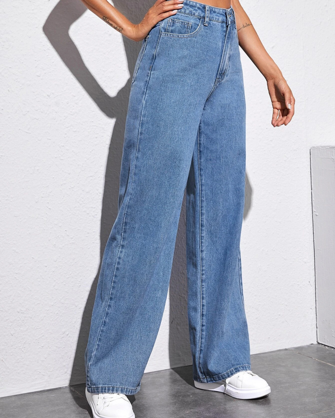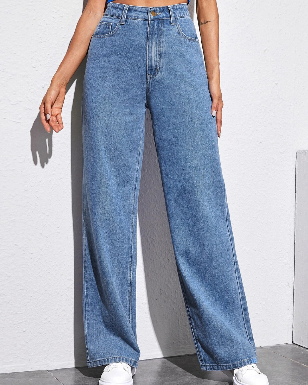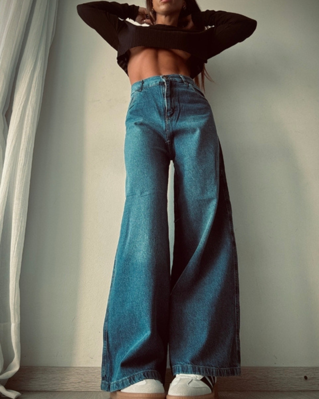 Blugi Largi și Ușori cu Talie Înaltă și Stil Relaxat