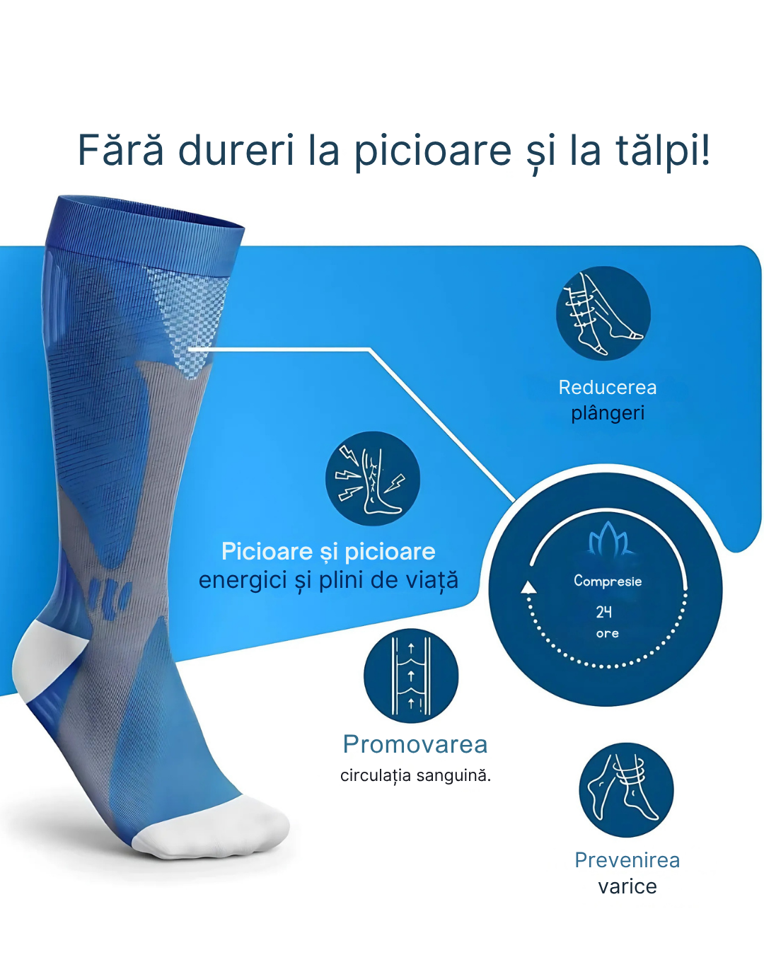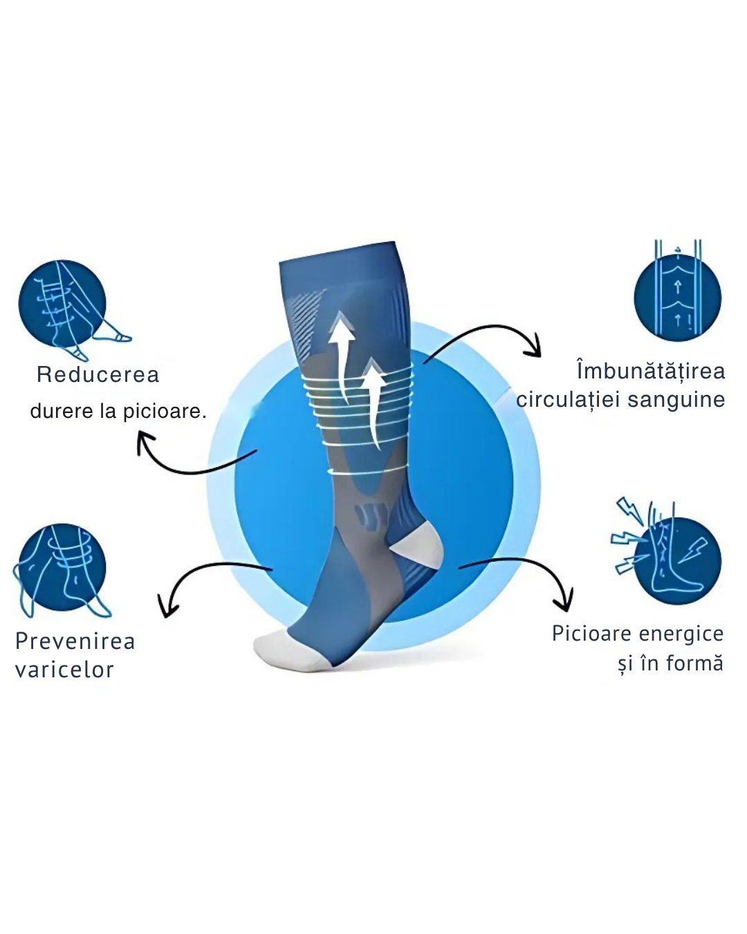 Bucurați-vă de un design care combină ușurința în utilizare cu confortul maxim. Aceste ciorapi se îmbracă și se dezbracă confortabil și sunt ușor de spălat, devenind partenerul ideal pentru viața de zi cu zi. Masajul lor delicat al picioarelor și al tălpilor ameliorează durerea, făcând fiecare pas mai plăcut, chiar și după ore lungi petrecute în picioare sau așezat.