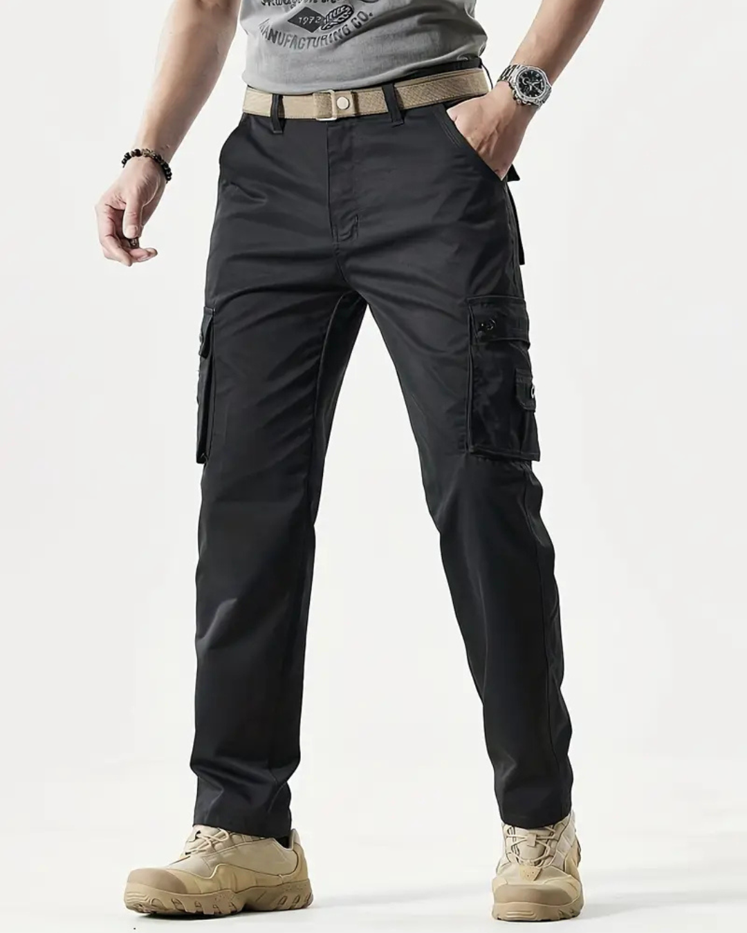 Acești pantaloni casual combină un design inspirat din stilul retro cu practicitatea buzunarelor multiple, fiind ideali pentru bărbații activi și stilati