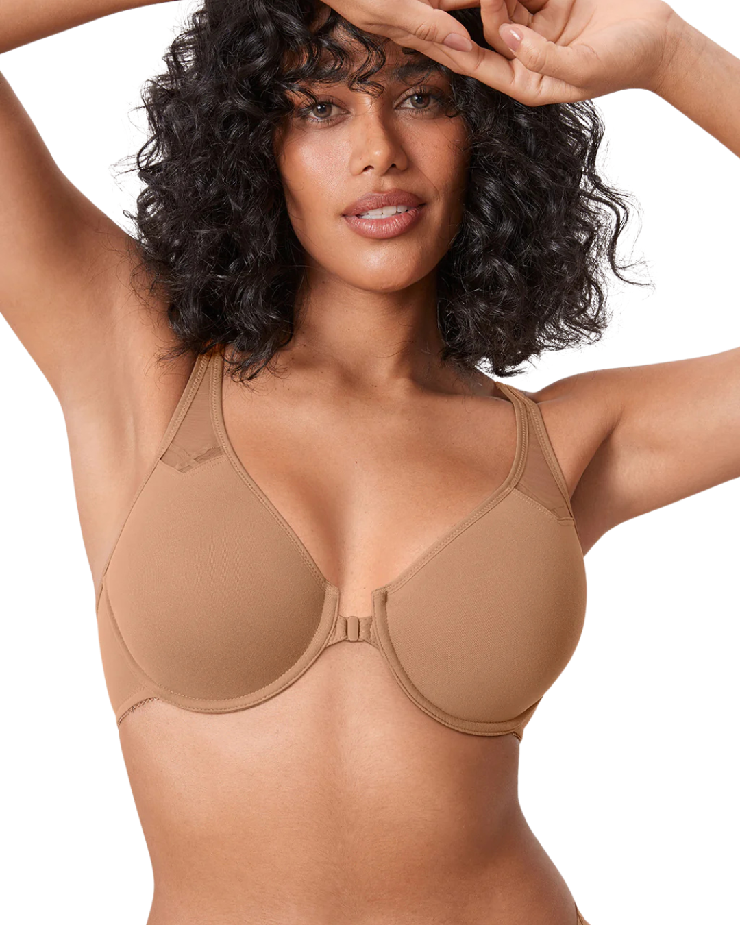 Fermoarul frontal îl face ușor de purtat, practic și rapid de pus și scos. Ideală pentru femeile care apreciază comoditatea fără a compromite stilul.