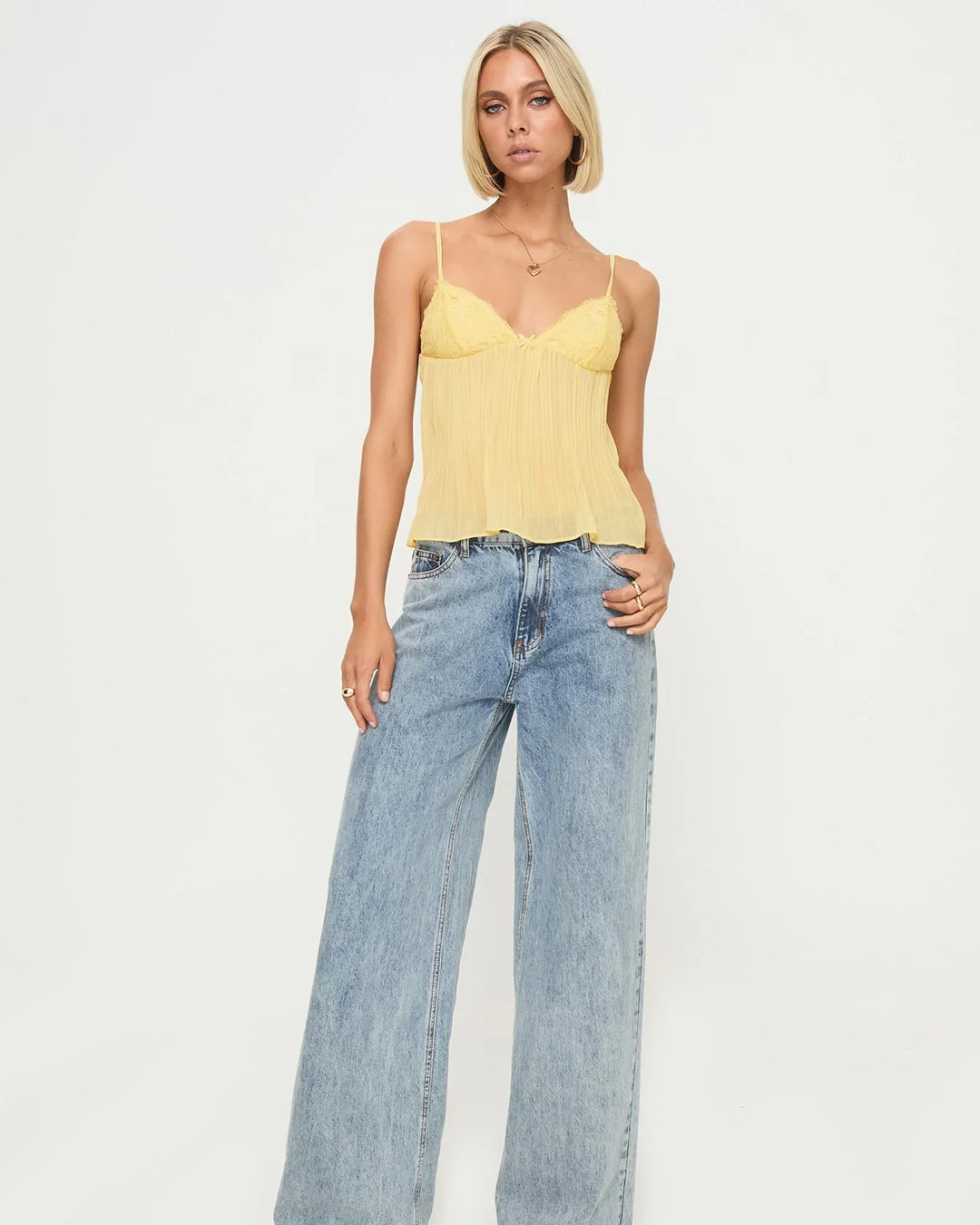 Bretelele subțiri și decolteul delicat pun subtil în valoare decolteul. Dantela lucrată adaugă o notă de rafinament, făcând acest articol de îmbrăcăminte perfect pentru o varietate de ocazii.